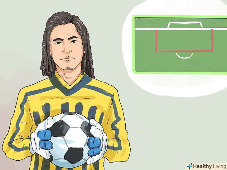 Вам необхідно розуміти принципи геометрії, щоб поліпшити свою техніку. бути воротарем частково означає передбачати удари по воротах, які можуть летіти з різною швидкістю і з різних кутів. Якщо у вас буде основне розуміння, що принципи геометрії і математики вирішують куди приземлиться м'яч, це допоможе вам краще передбачати події гри. [28]- Завжди намагайтеся закривати кути, щоб у супротивника не було багато варіантів для удару по м'ячу. Наприклад, якщо гравець нападає праворуч, не стійте посередині воріт. Замість цього поверніться обличчям до м'яча, а самі станьте ближче до правої стійки. [29]
