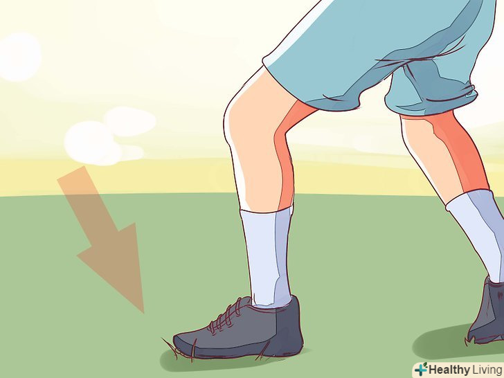 Опорна нога. відштовхніться ногою, з якої почали рух, а потім твердо і впевнено упріться другою ногою в землю. Це буде ваша осьова точка, з якої виконується замах і вибивається м'яч. Обидва кроки виконуються досить швидко, а ноги розставляються досить широко, ніби ви збираєтеся зірватися з місця і побігти. Так в ногах виявиться більше сили. Перші кроки слід виконувати на швидкості бігу підтюпцем, незалежно від їх кількості.- Упираючись неробочої ногою, робоча повинна бути відведеною назад, повертаючись після першого кроку. З цього Положення виконується мах вперед для удару.