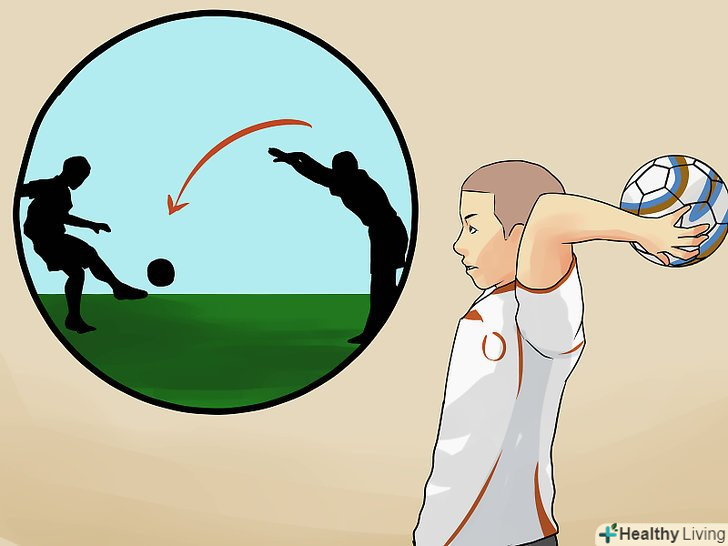 Розіграйте вкидання. вкидання призначається в тому випадку, якщо суперники вибивають м'яч за одну з бічних ліній. При цьому необхідно слідувати правилам вкидання м'яча. Це теж хороша можливість забити гол. Взаємодійте з партнерами і відпрацьовуйте різні варіанти розіграшу м'яча після вкидання з-за бічної лінії. [10] [11]- Потрібно вкидати м'яч двома руками і при цьому не відривати обох ніг від бічної лінії.