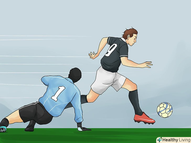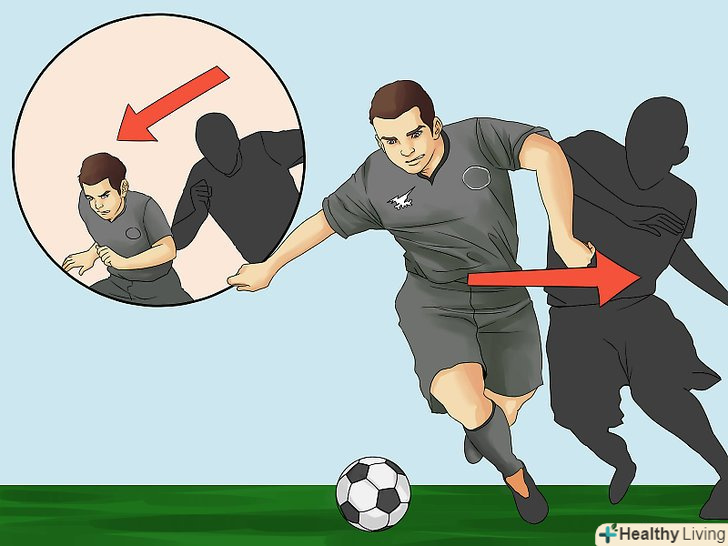 Переграйте захисника. гравець захисту, який намагається заблокувати прохід або відібрати у вас м'яч — це серйозна перешкода на шляху до воріт. Слід розуміти, що у захисників є слабкості, якими можна скористатися. Використовуйте наступні способи, щоб розібратися з захисником: [1]- Дозвольте захиснику наблизитися до вас на швидкості, щоб він втратив рівновагу і дозволив оббігти себе.