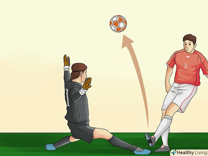 Нанесіть удар і забийте гол. якщо ворота вже перед вами, потрібно нанести швидкий і прицільний удар, щоб забити гол. Правильно Бийте по м'ячу і цільтеся повз воротаря, щоб йому не вдалося дістати м'яч. [3] [4]- Бийте внутрішньою стороною стопи, щоб нанести більш точний, нехай і менш сильний удар.