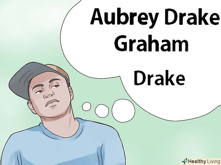 Використовуйте ваше середнє / друге ім'я.якщо у вас подвійне ім'я, то другий його компонент може стати пристойним псевдонімом. За прикладом далеко не підемо: реп-виконавець Дрейк (Drake) за паспортом і зовсім Обрі Дрейк Грем (Aubrey Drake Graham).[4] а ось Анджеліна Джолі Войт і зовсім зробила своє друге ім'я прізвищем.