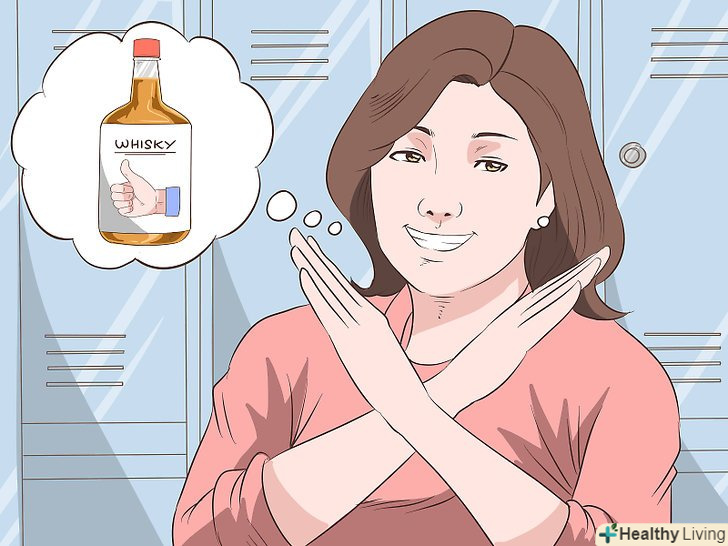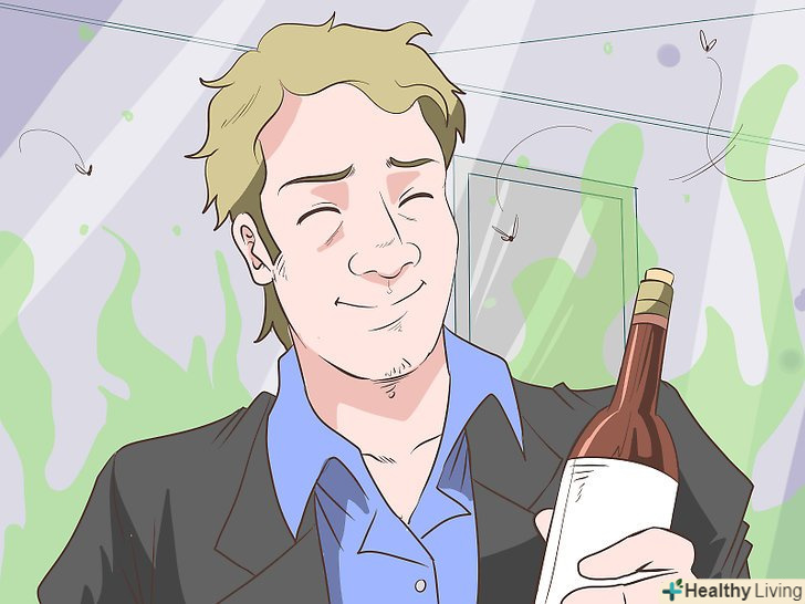 Запах алкоголю.можна прополоскати рот спиртним напоєм або вилити його на одяг. Якщо ви не вживаєте алкоголь, то можна випити безалкогольний напій, які все одно має потрібний запах. Якщо від вас пахне спиртним, то у людей виникне потрібне враження.- В якості безалкогольних напоїв можна вибрати пиво, коктейлі або шампанське.[14]