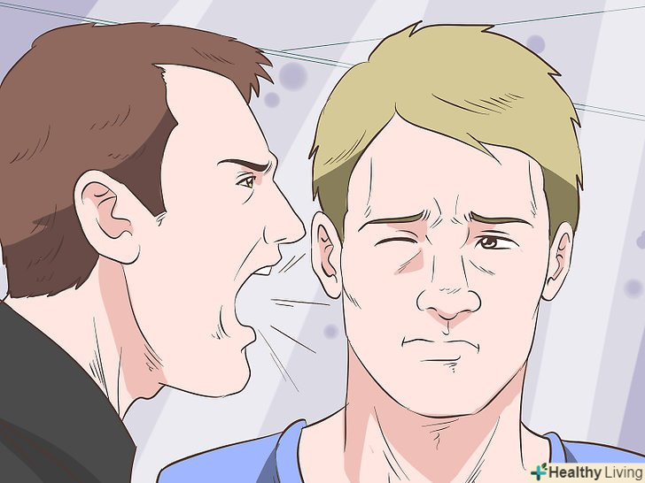 Говоріть голосніше звичайного і порушуйте особистий простір.якщо ви перебуваєте в галасливому місці на зразок бару, клубу або вечірки, то цілком природно говорити голосніше звичайного, щоб вас розчули. П'яні ж можуть не усвідомлювати гучність своєї мови через порушення когнітивної функції. Кричіть прямо в обличчя людям і підходите ближче звичайного.- Якщо вас просять відійти трохи далі, то проявіть ввічливість і відійдіть.