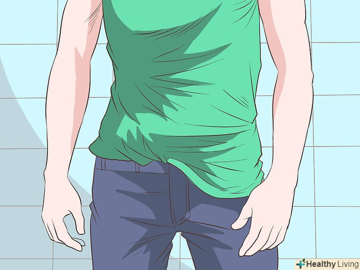Заправте половину сорочки.так ви додасте собі розсіяний вигляд, а люди помилково приймуть вас за п'яного. Переконайтеся в тому, то ви не маєте нарочито неакуратний вигляд, інакше оточуючі не повірять вам. Слід виглядати так, ніби ви тільки що вийшли з вбиральні.- Наполовину заправлена сорочка може бути сприйнята як спроба створити власний імідж.[4]