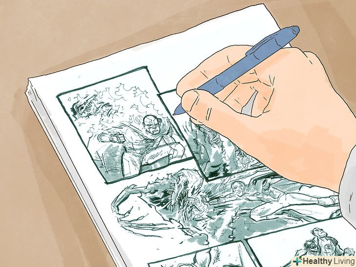 Виберіть певний стиль малювання.Зробіть свій комікс виділяється, вибравши стиль малювання, який вам подобається і добре у вас виходить. В якості натхнення можна використовувати стиль манги або американських коміксів. А, може, варто кинути собі виклик і спробувати новий стиль малювання. Виберіть унікальний стиль, який при цьому відповідає вашим здібностям і баченню в якості художника.[4]- Крім того, варто вибрати стиль малювання, який не буде даватися Вас з працею і віднімати багато часу. Після того, як ви зробите начерк коміксу, ви завжди зможете повернутися і внести зміни.