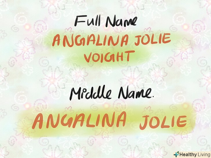 Використовуйте своє друге ім'я. можна використовувати друге ім'я в якості основного імені або прізвища. Один з відомих прикладів-Анджеліна Джолі (Ім'я при народженні: Анджеліна Джолі Войт)