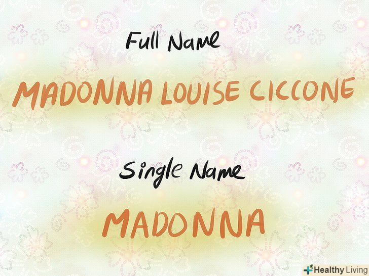 Використовуйте лише одне ім'я.якщо вам здається, що ваше основне / друге ім'я або прізвище звучать унікально, можете використовувати один з варіантів. Кілька прикладів:- Бейонсе (ім'я при народженні: Бейонсе Жизель Ноулз)