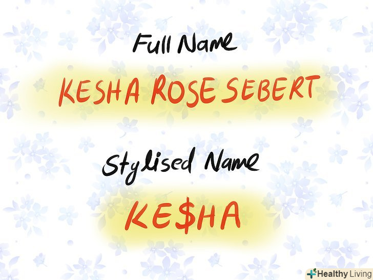 Стилізуйте своє ім'я за допомогою цифр, дефісів або спеціальних позначень.у жанрі хіп-хоп прийнято стилізувати своє ім'я так, щоб представляти образ міської людини, який виріс на вулиці. Кілька прикладів:- 2pac (ім'я при народженні: Тупак Амару Шакур)