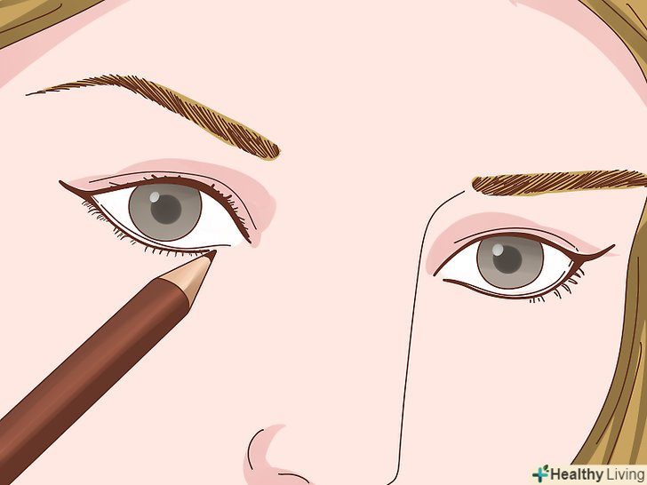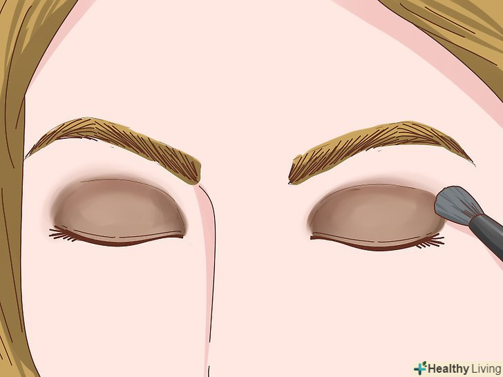 - Скористайтеся невеликим пензликом, щоб підвести шкірну складку більш темними тінями коричневого кольору. Потім пензлем для розтушовування тіней змішайте коричневі тіні з шкірної складки з іншими тінями, нанесеними на повіку. Продовжуйте додатково наносити все більш темні коричневі тіні на шкірну складку і розтушовувати їх до отримання овальних обрисів. Це дозволить вам досягти такого ж макіяжу, як у Кім.[14]