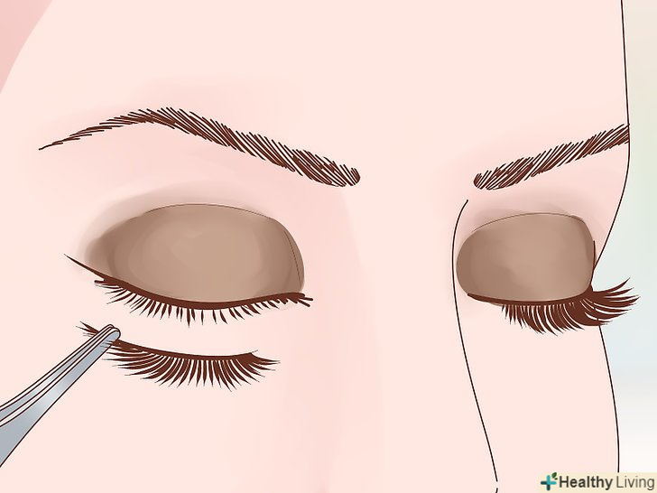 Наклейте накладні вії.звичайно ж, жоден з образів Кім не буде завершеним без помітних і хвилюючих накладних вій. Купуючи вії, зверніть увагу на те, що вони не повинні бути занадто довгими.- Якщо у вас і без того довгі і пишні вії, просто нафарбуйте їх чорною тушшю з ефектом збільшення обсягу.[16]
