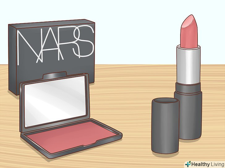 Скористайтеся правильно підібраними рум'янами і помадою.у багатьох інтерв'ю Кім не раз заявляла, що вона користується рум'янами Nars Blush кольору Orgasm. Завершіть макіяж ідеально підібраними рум'янами.- Посміхніться і нанесіть рум'яна на яблучка щік.[17]