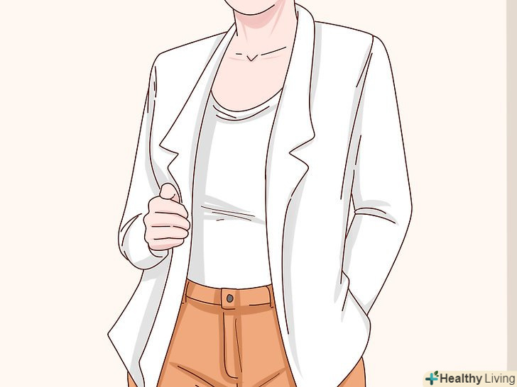 - Заправте білу футболку в Бермуди із завищеною талією. Доповніть образ красиво прикрашеним ременем, відповідним жакетом і туфлями на підборах, щоб вбратися в стилі Кардашян.[5]