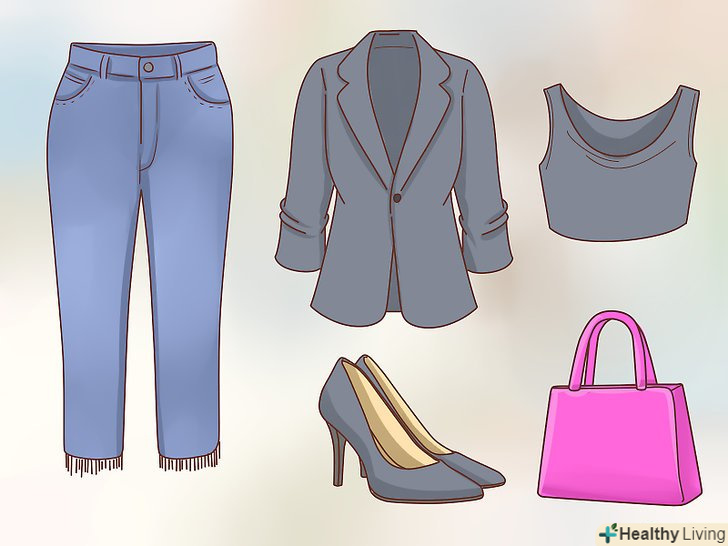 - Підберіть два добре поєднуються яскравих кольору. Доповніть блейзер кольору фуксії жовтою сумочкою. Візьміть блакитну сумочку до спідниці королівського синього кольору. Або одягніть блейзер кольору фуксії з помаранчевими джинсами.