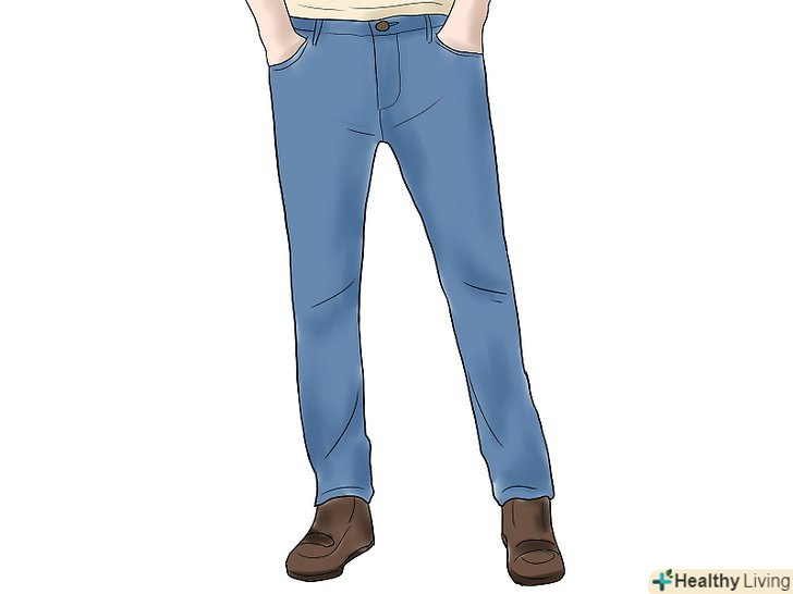 Почніть з покупки або пошуків звичайних класичних синіх джинсів.вони повинні бути прямими і класичного крою. Найголовніше-вони повинні бути у відмінному стані без розрізів, дірок або потертих швів. Джинси повинні добре сидіти і не бути мішкуватими або вільними і тим більше не висіти ззаду.- Якщо ви хочете ідеально відповідати цьому стилю, додайте манжети на джинси або просто підверніть їх. Якщо ви не будете таке носити, просто переконайтеся, що штанини акуратні і не зношені.