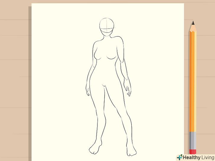 Намалюйте героя.Пам'ятайте, що милих персонажів, як правило, малюють з великими очима, в той час як крутих персонажів — з маленькими, звуженими очима. Перегляньте наступні статті, Що дізнатися, як краще намалювати свого персонажа: