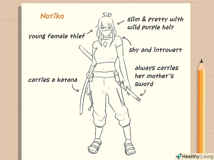 - Якщо вам важко придумати щось нове, згадайте, що ви раніше бачили в аніме/ манга. Потім об'єднайте все це або виберете особливості для свого героя.