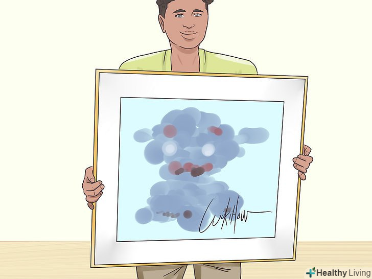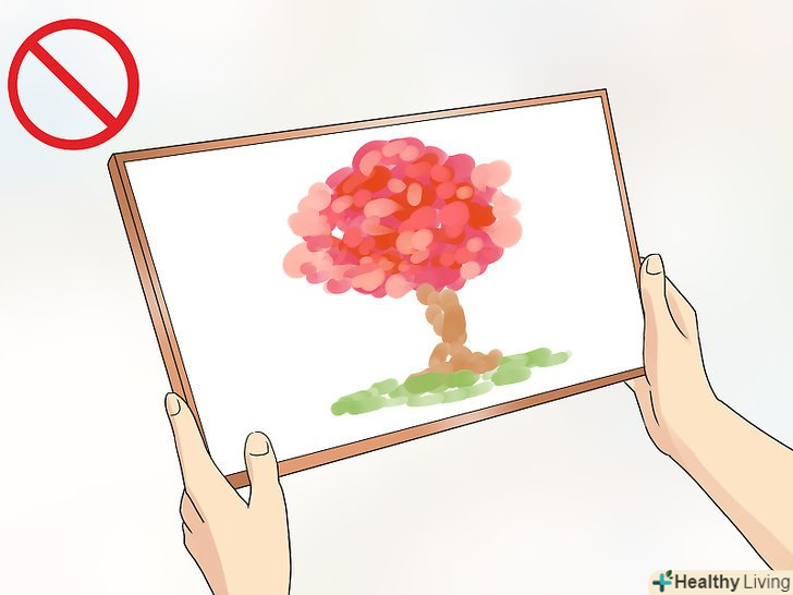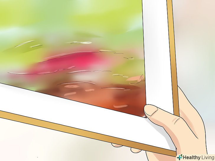 Поверхня справжньої картини повинна мати текстуру.щоб відрізнити справжню картину від майстерно виконаної підробки, зверніть увагу на поверхню полотна. На мальовничому полотні буде видно мазки і нерівності фарби. Якщо поверхня полотна дуже нерівна, велика ймовірність, що це не високоякісний друк, а живопис. Якщо поверхня абсолютно рівна, перед вами репродукція.[12]- Якщо на картині видно всього 1-2 об'ємних мазка, це може бути підробка, яка маскується під оригінал.