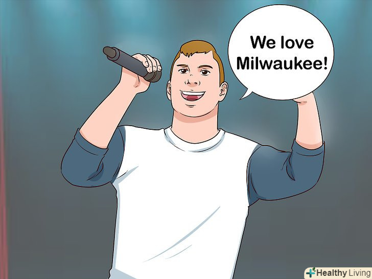 Згадуйте місце проведення концерту.слухачам приємно відчувати зв'язок з групою, тому не забувайте називати місто, в якому проходить концерт. Виберіть незвичайний і виділяється факт Про Місто або місце проведення у зв'язку з групою або Вами особисто і скажіть про це під час вступної промови.- Можна сказати: "ми записували свій новий альбом у Вашому місті. Ми любимо Перм!»