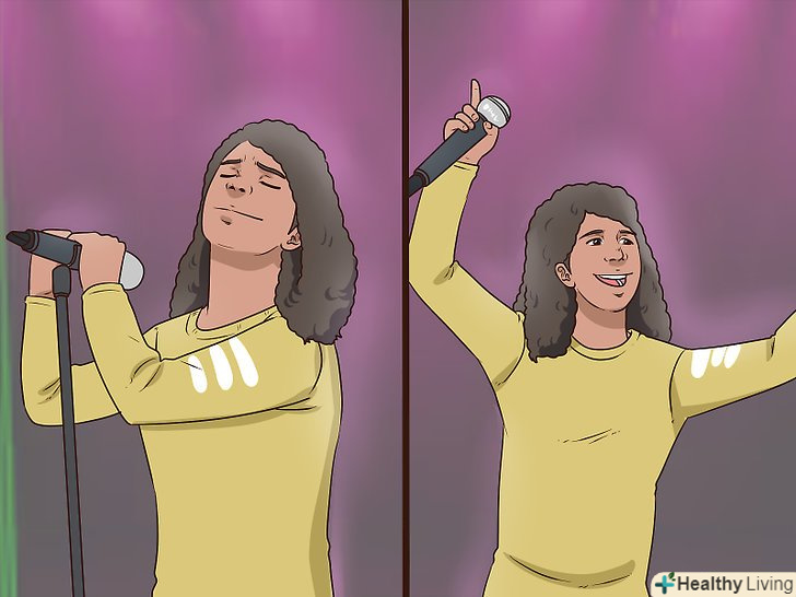 Трохи змінюйте рухи після кожної пісні.ніхто не захоче дивитися на повторення одного номера протягом години. Саме тому так важливо вносити зміни в слова і дії соліста після кожної пісні. Коли виконуєте баладу, можна стояти нерухомо і демонструвати емоції за допомогою міміки. Під час енергійних пісень слід пересуватися по сцені і вести себе активно під стать ритму.[5]- Приділіть особливу увагу порядку пісень у списку. Під час виступу слід представити всі різновиди ваших пісень і чергувати пісні в різному темпі. До того ж таке рішення дозволить вам періодично відпочивати після енергійних рухів.