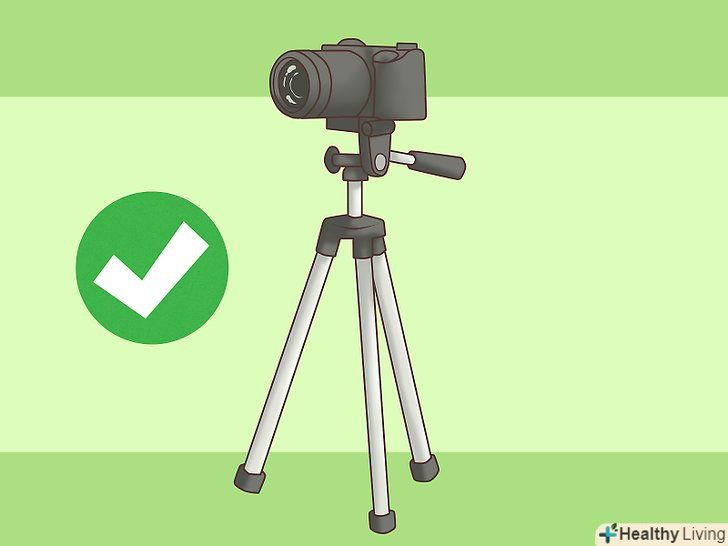 Встановіть камеру на триногу.через те, що кожен кадр мультфільму відображає найменші рухи фігурок, дуже важливо зробити так, щоб камера весь час залишалася у фіксованому положенні. Для цього необхідно встановити її на триногу. Можливо, ви додатково захочете відзняти кілька тестових кадрів, щоб переконатися, що тринога стоїть на правильній висоті і під правильним кутом до сцени, що знімається.[8]- Для зйомок пластилінового мультфільму можна використовувати будь-яку цифрову камеру. Більша цифрова дзеркальна фотокамера дасть вам більше можливостей для редагування матеріалів, але зйомки можна проводити і найпростішої цифровою мильницею.