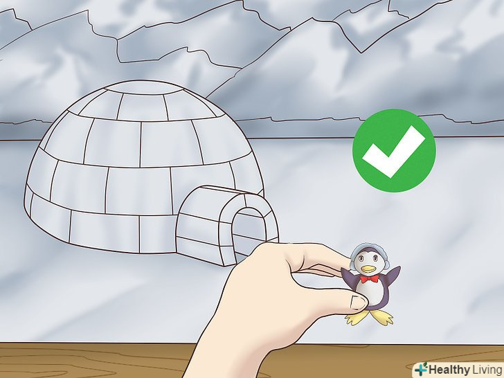 Приготуйте або сконструюйте додаткові предмети з інших матеріалів.якщо ви не збираєтеся створювати абсолютно все з пластиліну, вам буде потрібно зібрати або самостійно сконструювати все інше з інших матеріалів. Для цього може непогано підійти Lego або інші аналогічні конструктори. Ймовірно, ви також захочете створити фон для свого мультфільму (залежно від сюжету). Відмінним фоном можуть стати малюнки на щільному картоні.[4]- Наприклад, якщо ваш мультфільм розповідає про собаку і її господаря, що гуляють в парку, вам буде потрібно комплект дерев, можливо, ставок, і, ймовірно, ще кілька будівель на задньому плані. Дерева можна зібрати з конструктора, А ставок і фон зробити з картону.