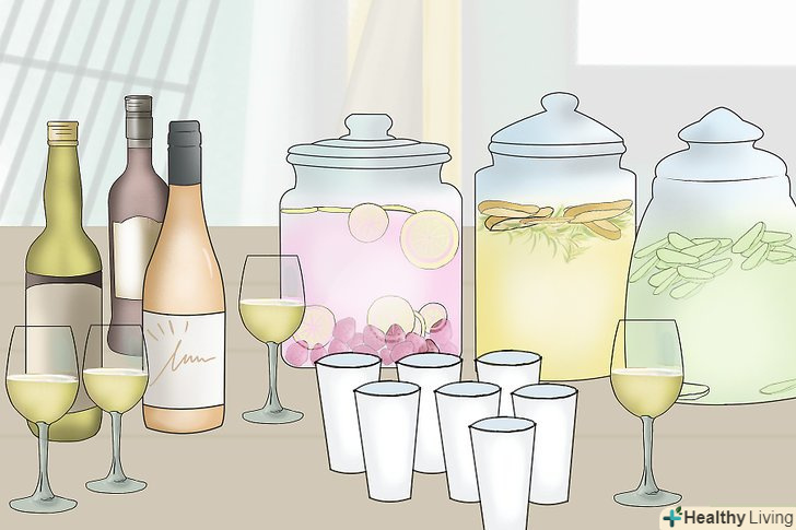 Організуйте легкі закуски.Подавайте їжу та напої для гостей, поки вони насолоджуються експозицією. Простих закусок на зразок сиру, фруктів, канапе і вина буде достатньо в більшості випадків. Якщо очікується великий наплив відвідувачів, замовте коктейльні креветки, мініатюрні пироги, хумус та інші більш істотні популярні страви.[23]- Як і все, що стосується виставки, при складанні меню потрібно враховувати локацію. Також подумайте, яку атмосферу ви хочете створити (буденну або формальну) і в які наряди повинні бути одягнені присутні.