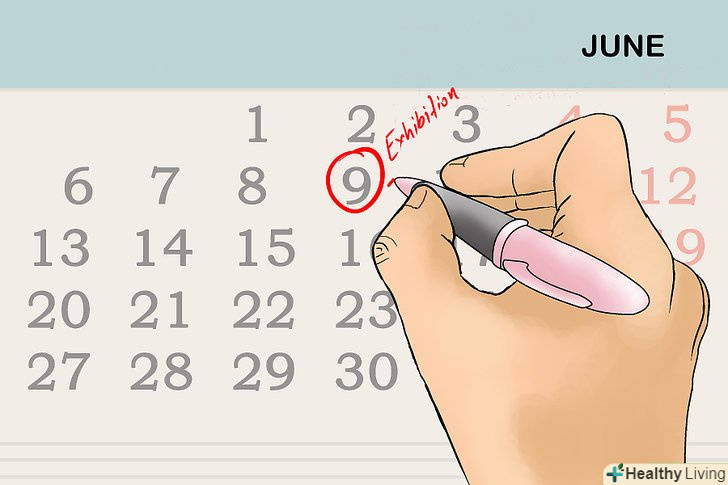 Визначитеся з датою і часом.організація художньої виставки вимагає виснажливої за інтенсивністю координації, тому будьте реалістичні щодо часових рамок, які ви для себе встановлюєте. Варто починати планування заходу принаймні за 2-3 місяці, щоб у вас було достатньо часу на підготовку. Якщо є можливість, виберіть дату ближче до кінця тижня, коли у багатьох вихідний, і люди шукають, чим би зайнятися в місті.[7]- Постарайтеся, щоб дати виставки не збігалися з якимись святами. Так як в цьому випадку вам доведеться поборотися за увагу публіки.[8]