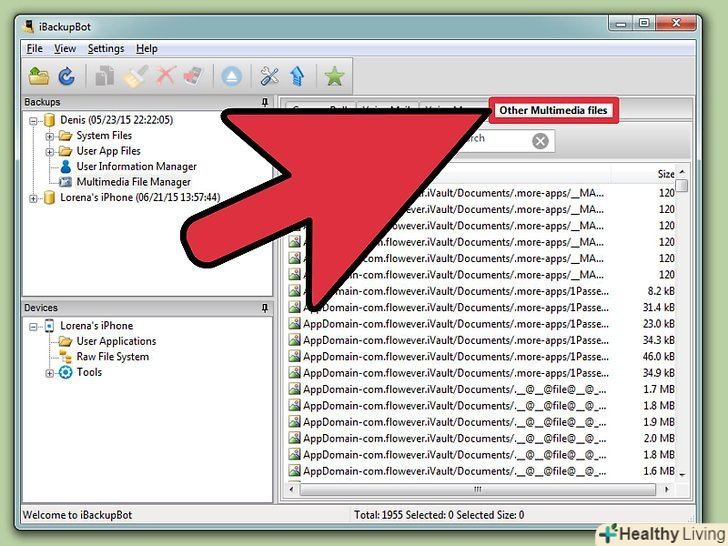 Скачайте iBackupbot.кеш програми Messages (Повідомлення) займає значну пам'ять. Проблема в тому, що навіть після видалення повідомлень вони, як правило, зберігаються в пам'яті пристрою у вигляді резервних копій. Тому вам знадобиться менеджер резервного копіювання iBackupbot, щоб видалити такі повідомлення.- Ви можете завантажити iBackupbot з сайтуicopybot.com/itunes-backup-manager.htm. ви можете працювати з тестовою версією цього менеджера.