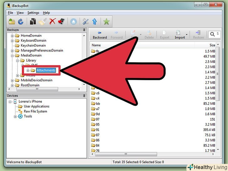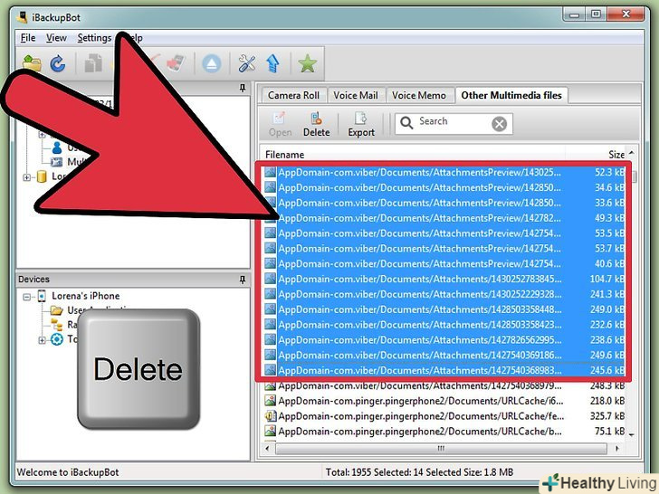 Виділіть всі файли, шлях до яких починається з.MediaDomain/Library/SMS/Attachments. Натисніть "Видалити".