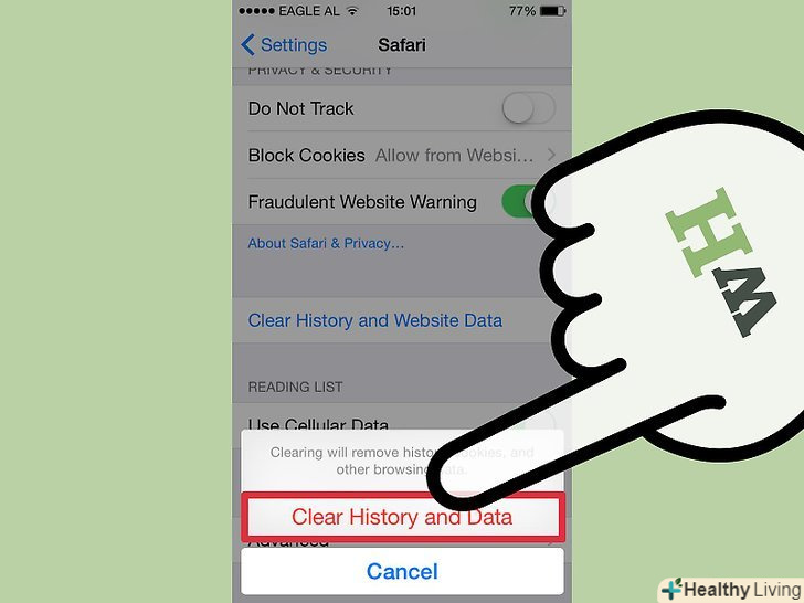 Ще раз натисніть "Очистити історію і дані сайтів".кеш Safari буде очищений.[2]