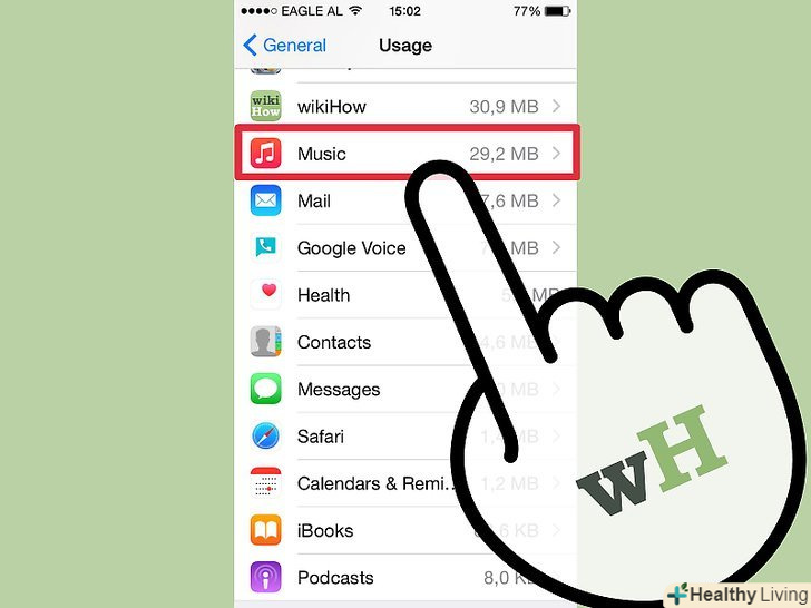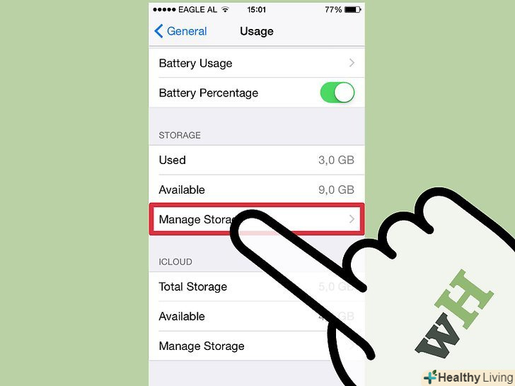 Видаліть та перевстановіть програму. немає швидкого способу видалити дані додатків, якщо вони встановлені у вашому пристрої. Вищеописані методи розповіли вам про видалення даних певних додатків, але найшвидший спосіб стерти дані – це просто видалити додаток, а потім встановити його.- Запустіть програму "налаштування «і виберіть» Загальні « → » використання « → »Управління пам'яттю". Відобразитися список додатків, встановлених у вашому пристрої iOS.