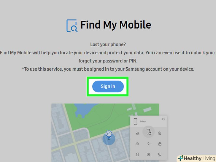Відкрийте веб-сайт "Знайти телефон". перейдіть на сторінку https://findmymobile.samsung.com / в браузері. Через цей сайт можна розблокувати Samsung Galaxy, якщо на пристрої ви увійшли в свій обліковий запис Samsung.- Якщо на пристрої ви не авторизувалися в своєму акаунті Samsung,скиньте Налаштування.
