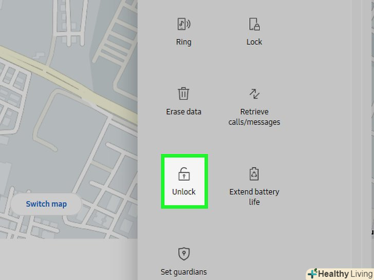 Клацніть поРозблокувати пристрій. ця опція знаходиться в лівій частині сторінки.[1]- Якщо у Вас кілька пристроїв Samsung Galaxy, клацніть по типу пристрою у верхньому лівому кутку сторінки, а потім в меню виберіть потрібну модель пристрою.