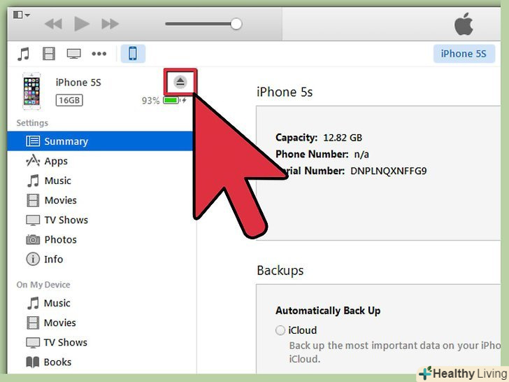 Від'єднайте ваш iPhone. натисніть на "Eject Device", щоб роз'єднати ваш пристрій з комп'ютером.- Якщо ви хочете перевірити ще раз оновлення, Просто зайдіть в оновлення і подивіться на встановлену версію програмного забезпечення.