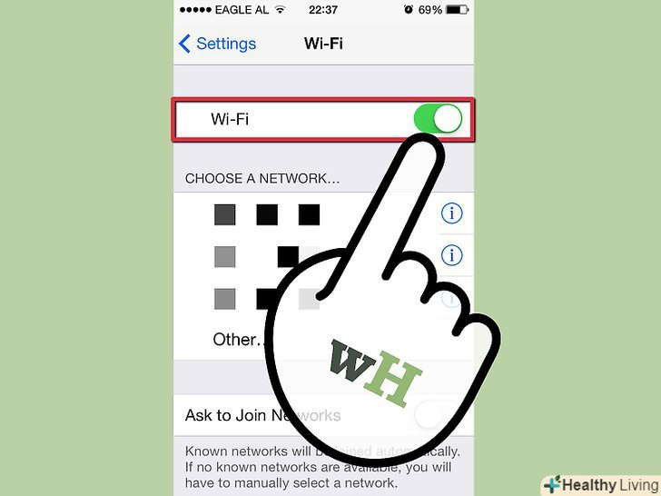 Натисніть на опцію Wi-Fi.Під'єднайтеся до локального Wi-Fi підключення, і не від'єднайтеся від нього під час процесу оновлення.