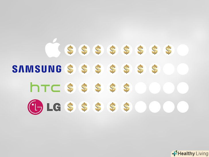 Визначте свій ціновий діапазон.телефони на iOS (iPhone), як правило, коштують дорожче, ніж їх аналоги на Android. Серед різних виробників телефони Apple і Samsung, як правило, є одними з найдорожчих (ціна деяких моделей коливається в межах 25-43 тис.рублів), тоді як HTC, LG і Motorola пропонують більш дешеві варіанти (деякі недорогі смартфони можна придбати менш ніж за 6 тис. рублів).- Телефони можуть субсидуватися при оформленні контракту з телефонним оператором, або надаватися "безкоштовно". Зазвичай це має на увазі оформлення дворічного тарифного плану обраного оператора, який містить штрафи за дострокове анулювання.