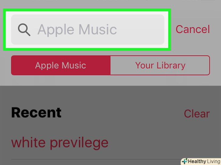Клацніть по рядку пошуку. вона знаходиться у верхній частині екрана.- Перейдіть на вкладку "Apple Music", яка розташована під рядком пошуку, якщо вона не пофарбована в червоний колір.