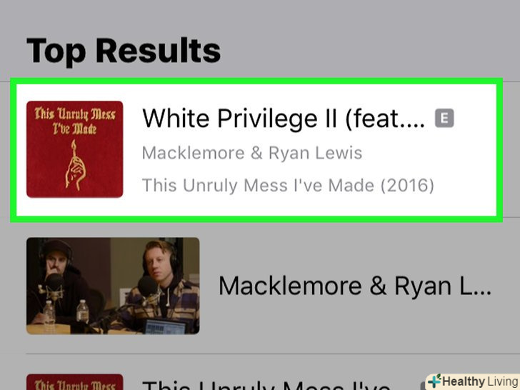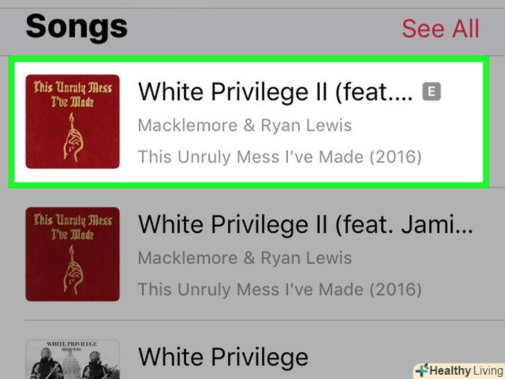Клацніть по потрібному результату пошуку. на екрані відобразяться всі доступні композиції, впорядковані за такими категоріями, як «Кращі», «альбоми», «пісні», «плейлисти» і так далі.- Прокрутіть список і клацайте по композиціях до тих пір, поки не знайдете потрібну пісню.