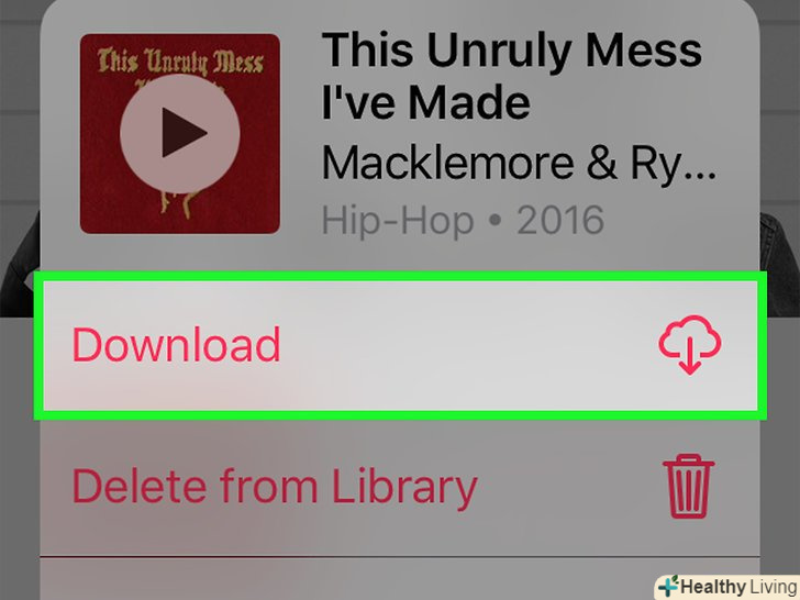 Натисніть "Завантажити". ця кнопка виглядає як хмара з спрямованою вниз стрілкою і знаходиться поруч з піснею, яку потрібно завантажити. Так ви скачаєте пісню на пристрій.- Зазначена кнопка відображається поруч з кожною піснею, яка є в медіатеці, але яка відсутня в пам'яті пристрою.