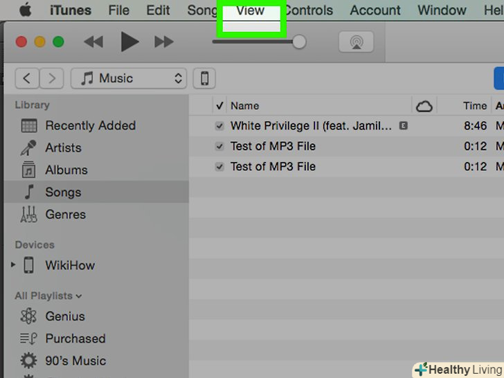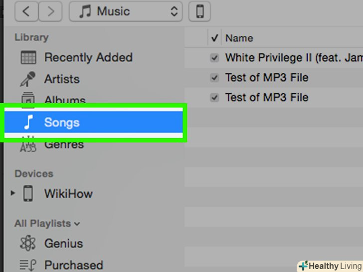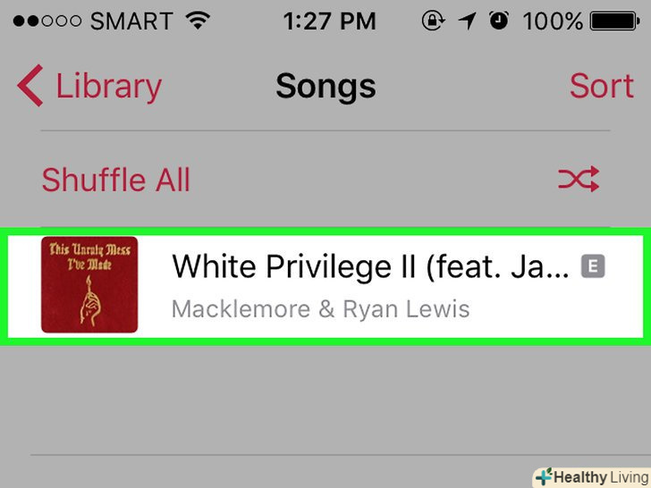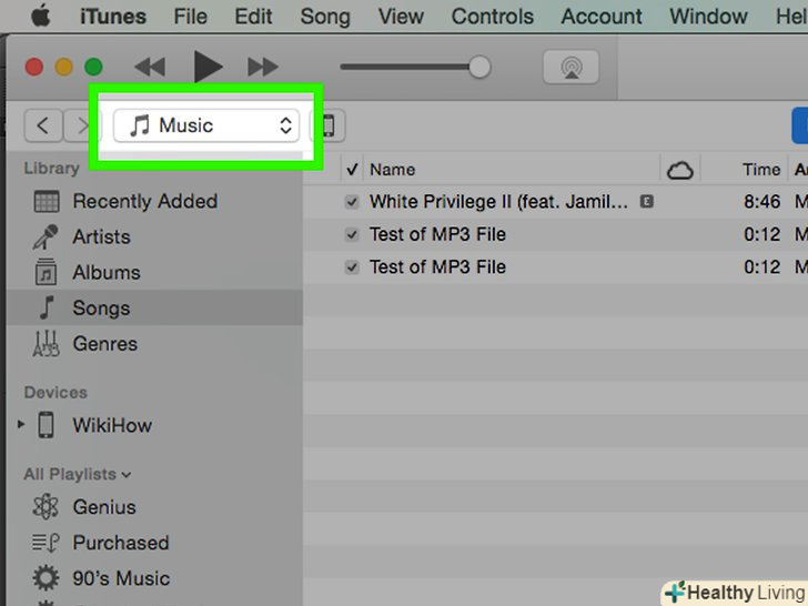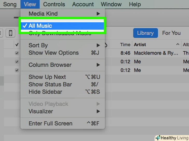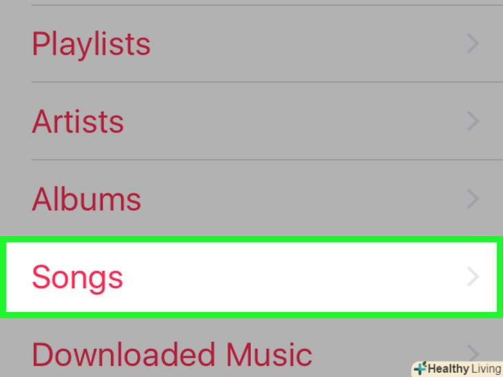 Натисніть < span class="nowrap" title="This is not a clickable button; it illustrates the button one should find." style="font-family: Segoe UI, Frutiger, Frutiger Linotype, Dejavu Sans, Helvetica Neue, Arial, sans-serif;letter-spacing:0px;padding:0em .6em; border:1px solid; border-color:#AAA #555 #555 #AAA; -moz-border-radius: 0px; -webkit-border-radius: 0px; border-radius: 0px; background-color: #F2F2F2; background-image: -moz-linear-gradient(top, #FCFCFC, #E0E0E0); background-image: -o-linear-gradient(top, #FCFCFC, #E0E0E0); background-image: - webkit-linear-gradient(top, # FCFCFC, #E0E0E0); background-image: linear-gradient(top, #FCFCFC, #E0E0E0);">пісні.ця опція знаходиться трохи нижче випадаючого меню. Відкриється список всіх пісень, які зберігаються в медіатеках iTunes і iCloud.