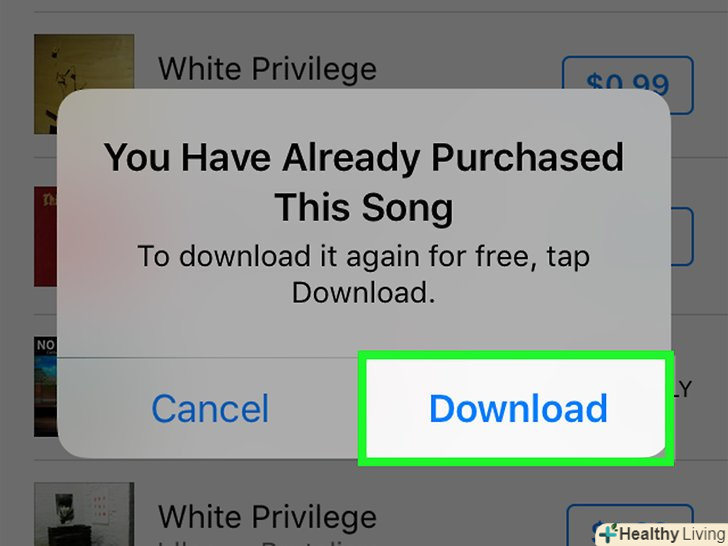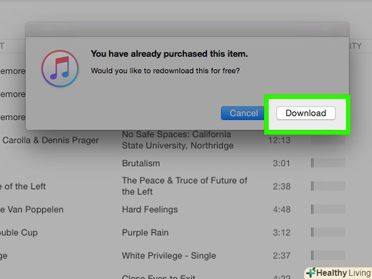 Натисніть "Завантажити". ця кнопка виглядає як хмара з спрямованою вниз стрілкою і знаходиться поруч з назвою пісні або альбому. Так ви додасте пісню в медіатеку iTunes.- Зазначена кнопка відображається поруч з кожною піснею, яка є в медіатеці, але яка відсутня в пам'яті пристрою.