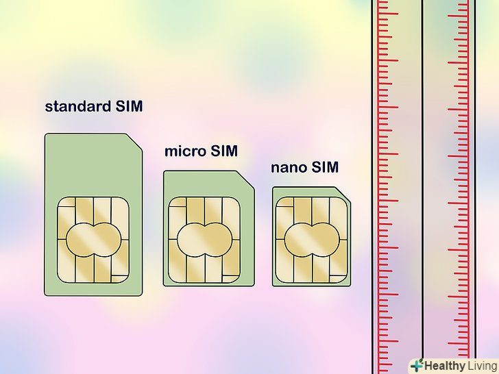 Визначте розмір своєї сім-карти. за допомогою лінійки визначте, яку за розміром сім-карту вам належить обрізати:[1]- мікро-сім-карту - 12 на 15 мм;