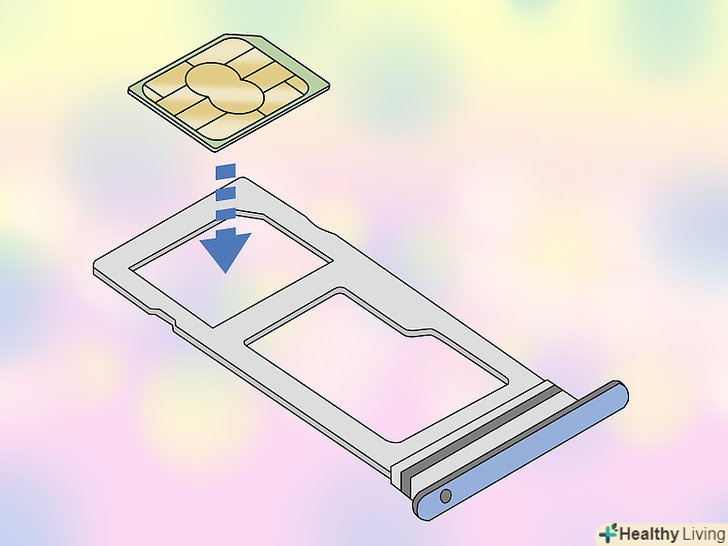 Знову спробуйте вставити свою сім-карту в лоток або слот.якщо вийшло, то вам вдалося обрізати свою сім-карту до розміру нано-сім-карти. В цьому випадку можна включити телефон і подивитися, чи може він вважати обрізану сім-карту.- Якщо сім-карта все ще не вставляється в лоток, потрібно підпиляти її ще трохи.