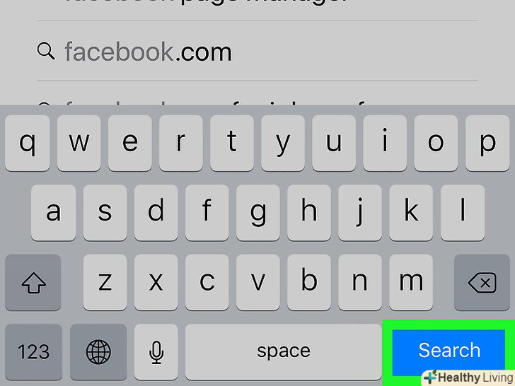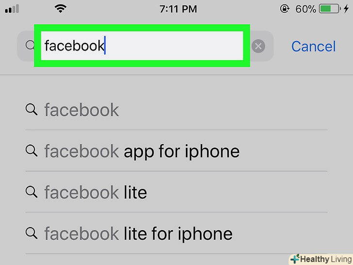 НатиснітьЗнайти.це блакитна кнопка в нижньому правому куті клавіатури iPhone. Почнеться пошук програми Facebook в App Store; додаток повинен відобразитися першим на сторінці результатів пошуку.