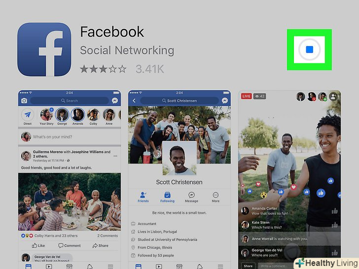 Дочекайтеся, коли завантаження завершиться. коли Facebook завантажиться, замість кругової шкали прогресу, яка знаходиться в правій частині екрана, відобразиться кнопка»Відкрити". для facebook facebook натисніть «Відкрити» в App Store або торкніться значка програми Facebook на головному екрані iPhone.