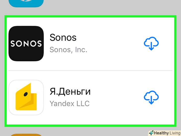 Перегляньте програми, прокрутивши список.у ньому містяться всі програми, які ви коли-небудь завантажували за допомогою поточного Apple ID.- Натисніть на вкладку "ні на цьому iPhone» або" ні на цьому iPad " в правій верхній частині вікна, щоб відобразити тільки ті елементи, які ви завантажували раніше.