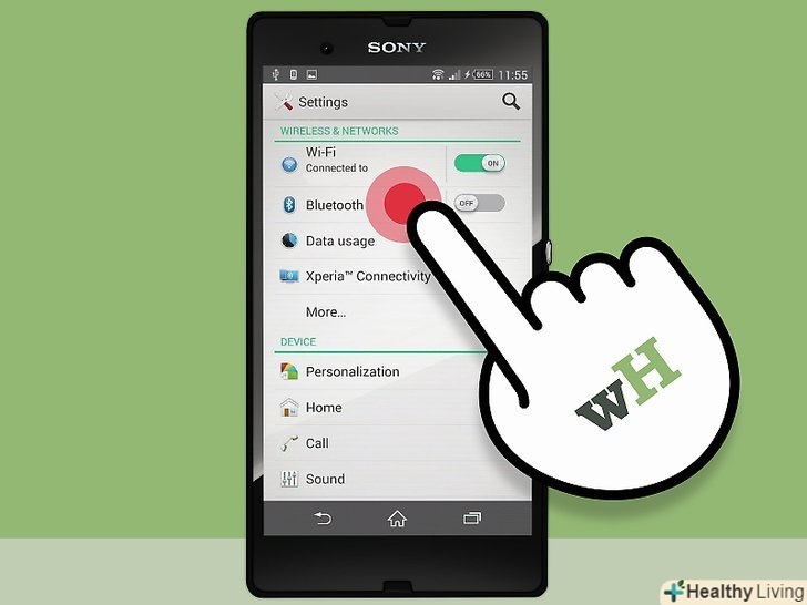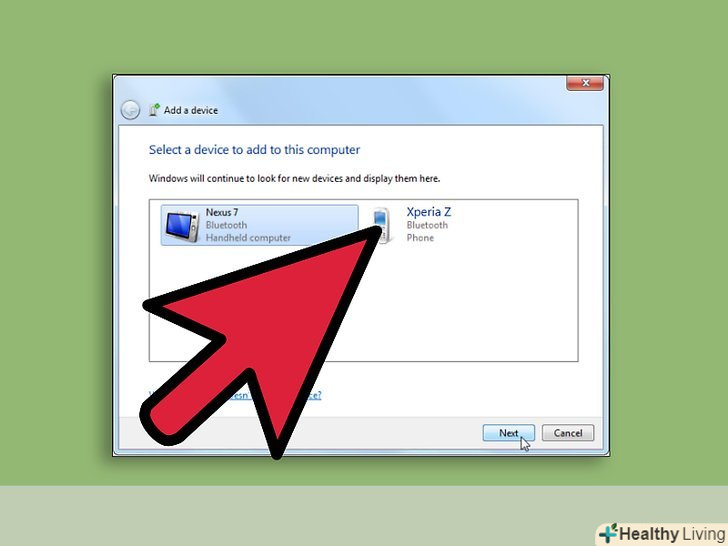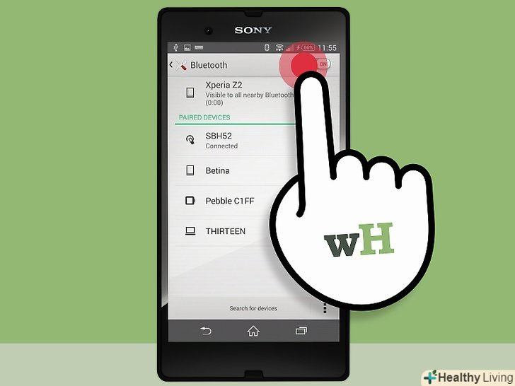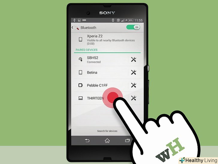 Перейдіть до найменування власного пристрою в списку і клікніть по ньому.ваш телефон стане видимим для інших пристроїв Bluetooth, включаючи ваш комп'ютер. [2]