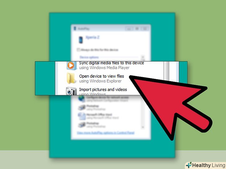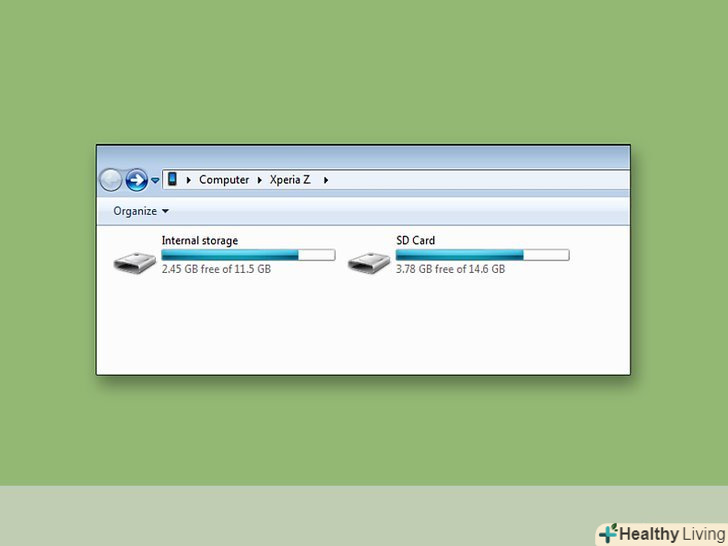 Виберіть параметр "Відкрити папку для перегляду файлів" через провідник Windows.у лівій панелі провідника Windows Телефон Sony Xperia Z відобразиться як зовнішній пристрій.