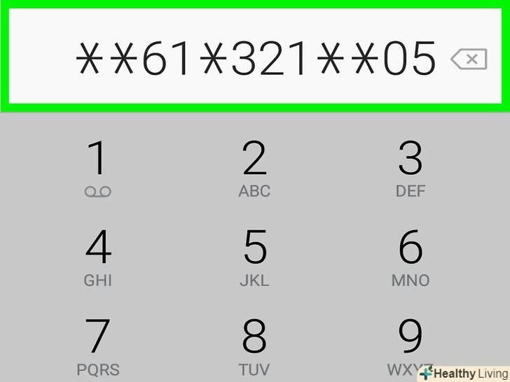 Замініть цифри00 в коді на число секунд, протягом яких телефон буде дзвеніти.під час всіх вхідних викликів ваш телефон буде дзвеніти вказану Вами кількість секунд, після чого дзвінок буде перенаправлений на голосову пошту.- Тривалість дзвінка можна налаштувати на05, 10, 15, 20, 25 і 30 секунд.
